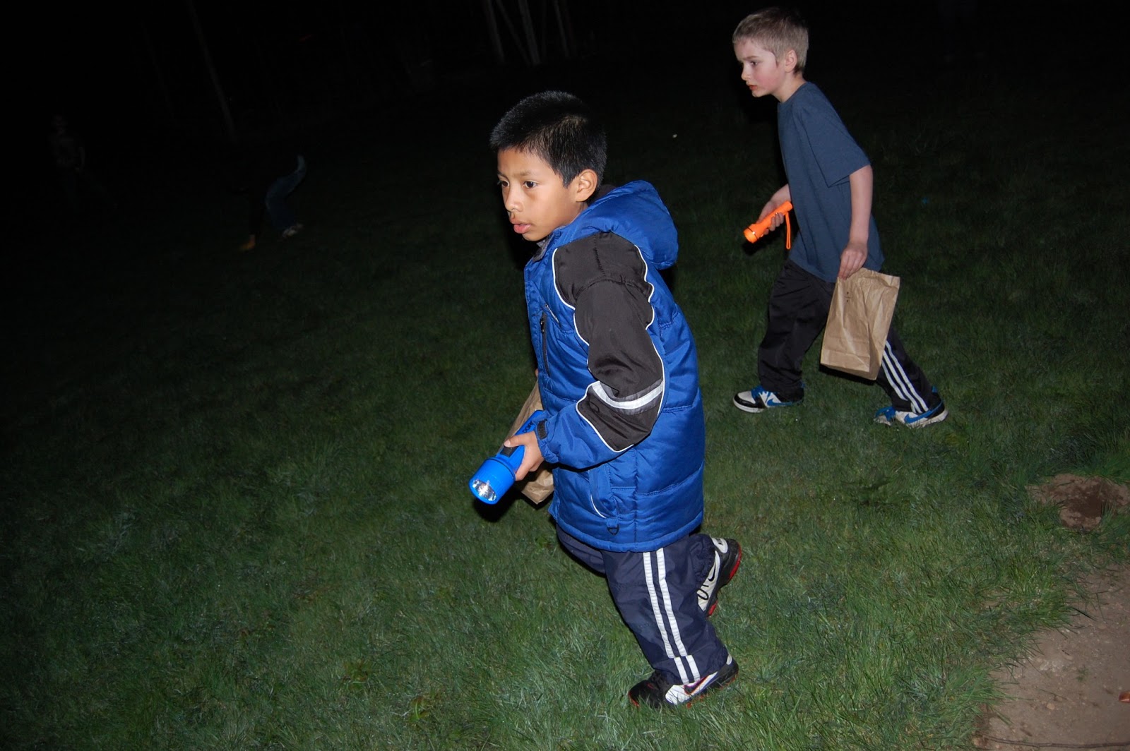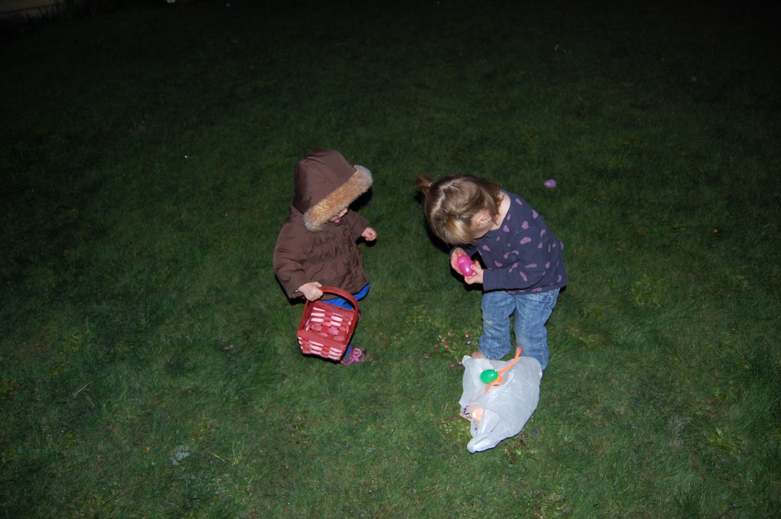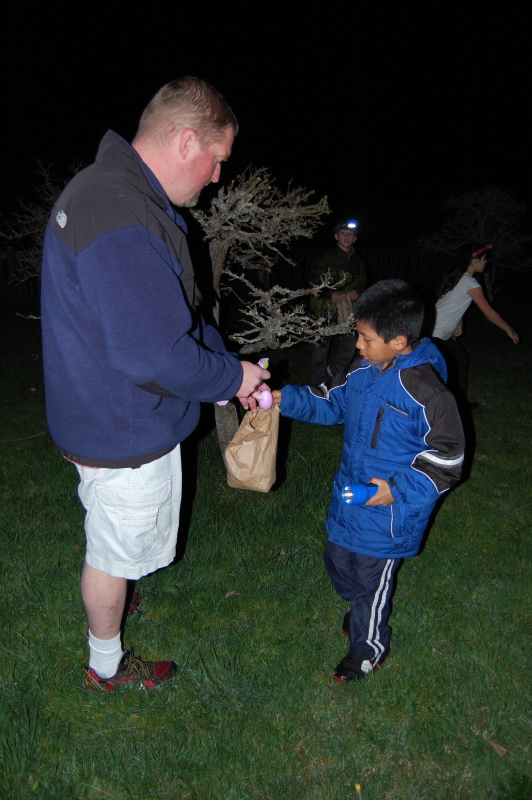 One of my favorite events of the year…our annual flashlight Easter egg hunt. This year the plan was to be low key and mellow, but you know what they say about the best laid plans. As always, SUPER FUN! The kids played for awhile in the yard, we BBQed and then waited for it to get dark before we started the fun. This year we changed it up a little, the toddlers had a pre-hunt and then went to bed, the big kids each had a symbol (we had premarked 15 eggs with each symbol) to find. It wasn’t the free-for-all of years past but it was great to hear so many kids helping eachother out so that most of the eggs were found!