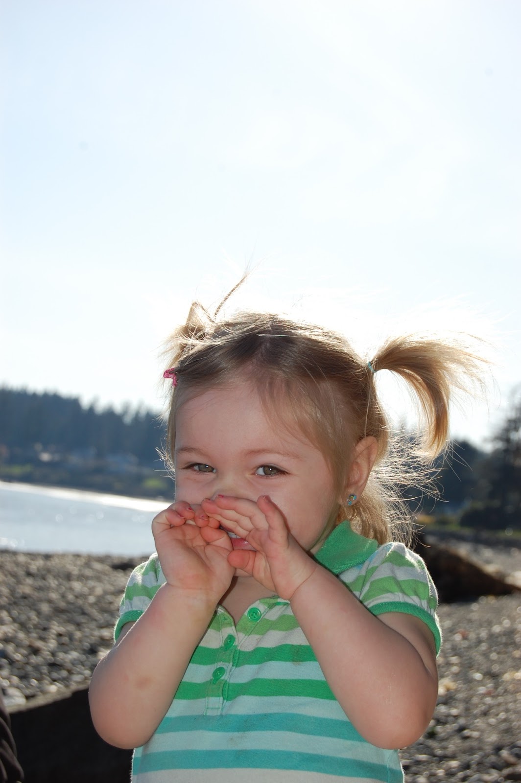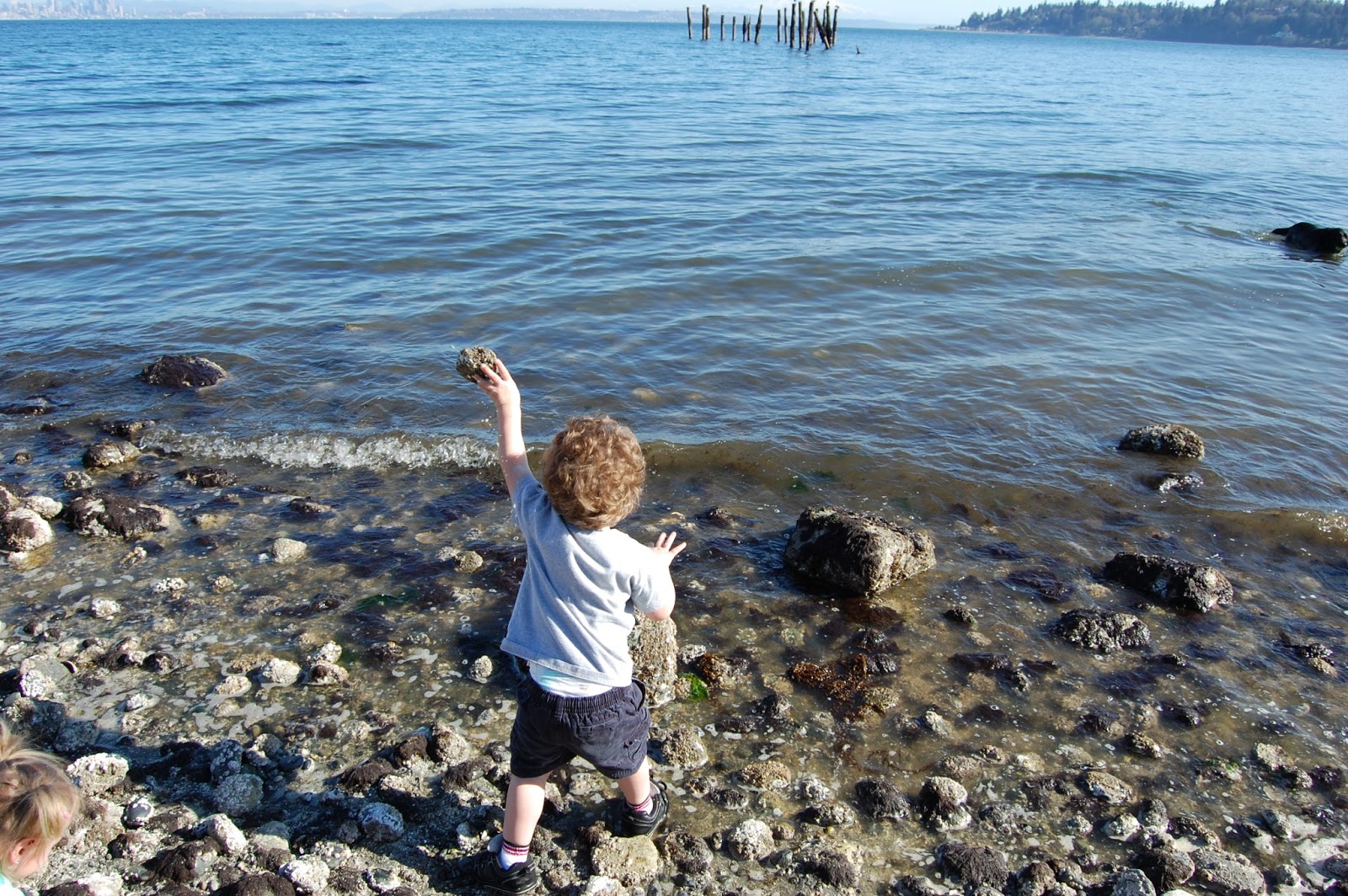 We live in a beautiful place, the water, the beach the trees…can’t imagine anywhere I would rather be than the Northwest on a sunny spring day. Walked down the hill with the kids and soaked in the sun. The babies kept busy throwing rocks in the water, Trey and Alice found a neat fort and brought in sticks and rocks to fix it up and Abbie loved going for a swim.