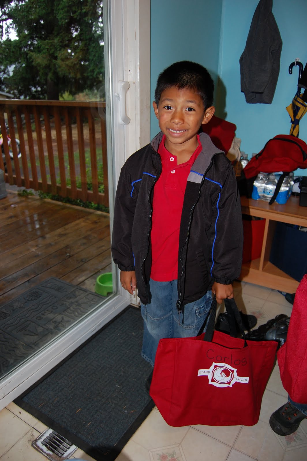 First day went well for Carlos, he loves his school and new class. We’re off to pick up Levi now so will report how his first day went. When I left him this morning, he was working hard on his nametag keychain that they will use at their bathroom/out of the classroom pass.