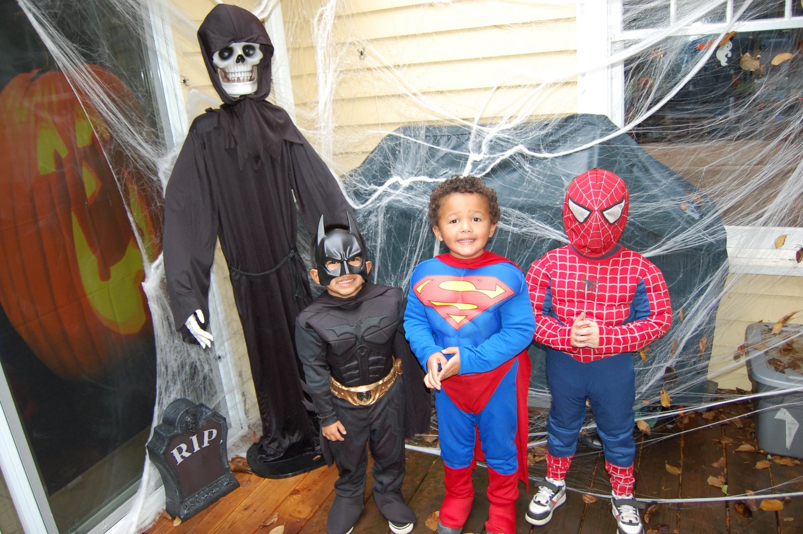 Oh Halloween is so fun! We got all gussied up, the boys as super heroes, me as a punk rocker and Dee as the Joker. In our town there is trick or treating downtown at all of the stores. Our church is right downtown and my favorite part about the event is the creepy organ music they play echoing through the streets as ghosts, ghouls and goblins trick or treat. I love seeing the costumes and running into friends. We finished our trek up and down Winslow Way and went into the church for their hot dog and chili dinner. Love that part, too!