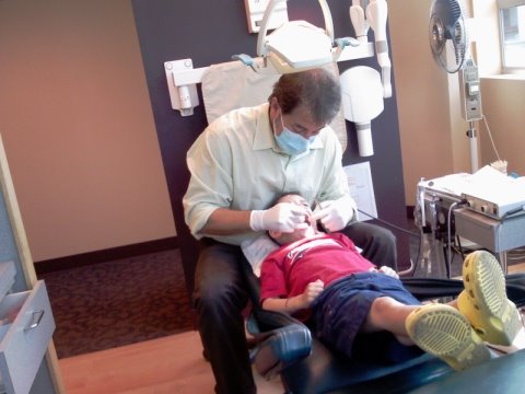 We had a great birthday party for Trey today…Dinosaurs, his favorite. He’s been looking forward to it for a long time and we had some cool activities for the kids to do. I think Trey may be the most creative almost 3 year old boy ever, though…at one point he came over with a foam sword and his foot in a bucket and said “I’m a peg leg pirate” Seriously! Linda and Scott brought the girls earlier in the day so we got some time to be with them, the girls are getting so big! Trey’s friends started showing up and playing, I had made dinosaur eggs (sand, water and cornstarch…heated then formed into an egg shape around a plastic dino and dried) that the kids broke open with a hammer, then they erupted volcanos (made out of the sand mixture and baking soda in the top and they poured colored red vinegar on top) and they did the pinata. They didn’t hit it open, but they all got a turn to whack it before Dee broke it open. Some more time playing outside, then cupcakes and presents. Whew, what a day!