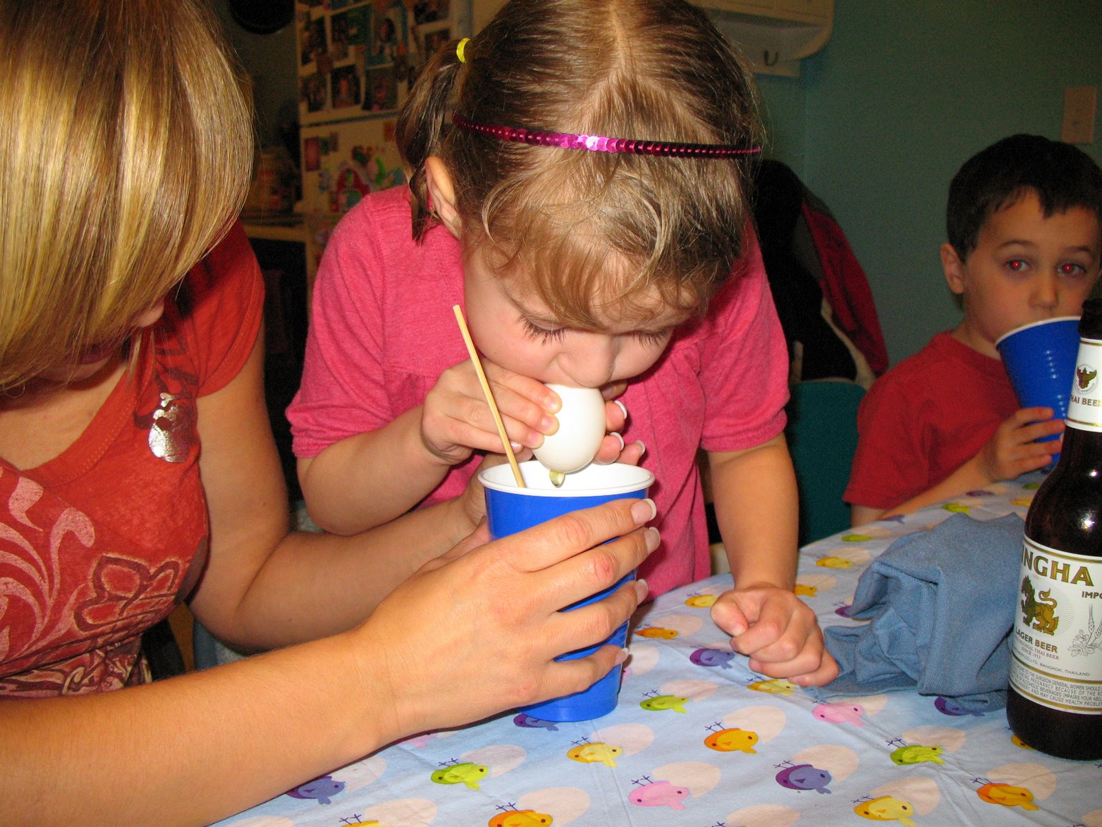 200 eggs out in the yard, just out there but I put reflector tape on each one so when the light shined on them it looked like little lights in the grass. Next year we are going to add the adult part of the hunt and hide beer in the trees. Does that sound white trash or what?
