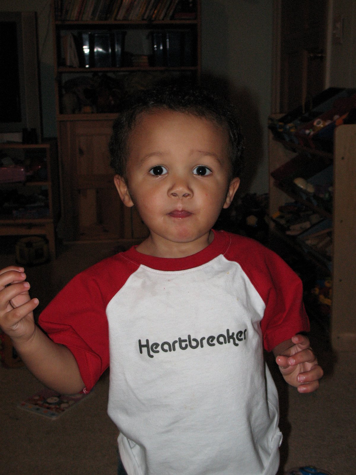 I got inspired to make up some funny shirts for the boys tonight. We have the iron on paper so all I have to do is print out whatever I want, then iron it onto a t-shirt. So far we have some Valentine’s shirts “Heartbreaker” “Hug Me” and “Ladies Man” and some just funny ones. For Trey “Does this diaper make my butt look big?” For Carlos “Sorry ladies…pimps don’t fall in love” and for Levi “I Kind of a Big Deal”