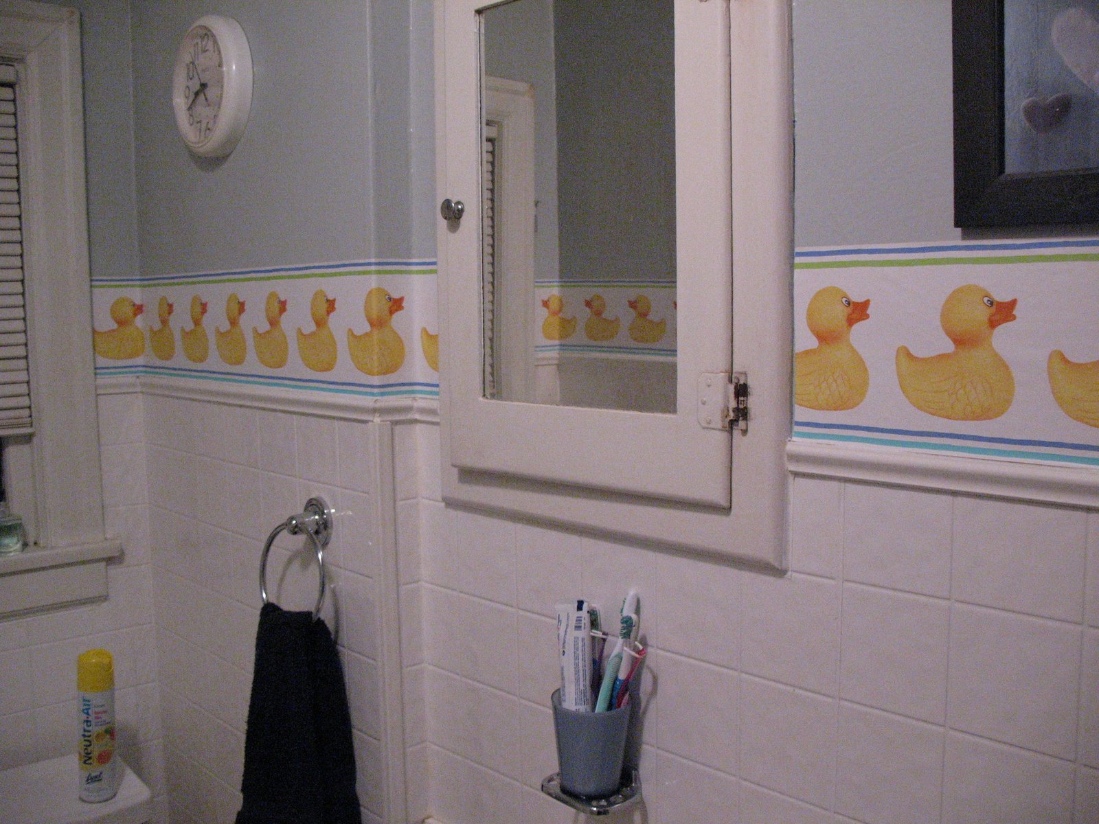 While Dee was laying down with the boys, I decided to wallpaper the bathroom. It wasn’t a huge job, it’s not perfect but I think it looks pretty darn cute. Next is the boys room…we’ve got a cool sports theme that’ll really pull the room together. Think that might take two of us to do, though so it may take awhile to finish that project.
