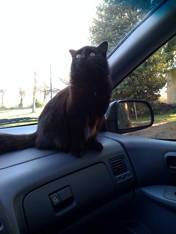 Our cat, Billie Jean, is a mostly outside cat at this point and she wasn’t liking the change in weather. We stopped back at the house for something, and Dee ran inside while the boys and I waited in the car. Billie Jean jumped on the warm car hood and walked around the windshield, trying to figure out how to get inside with us. I finally rolled down the passenger window and she came right in. Imagine Dee’s surprise when she got back in the van and found Billie Jean sitting on the dashboard!