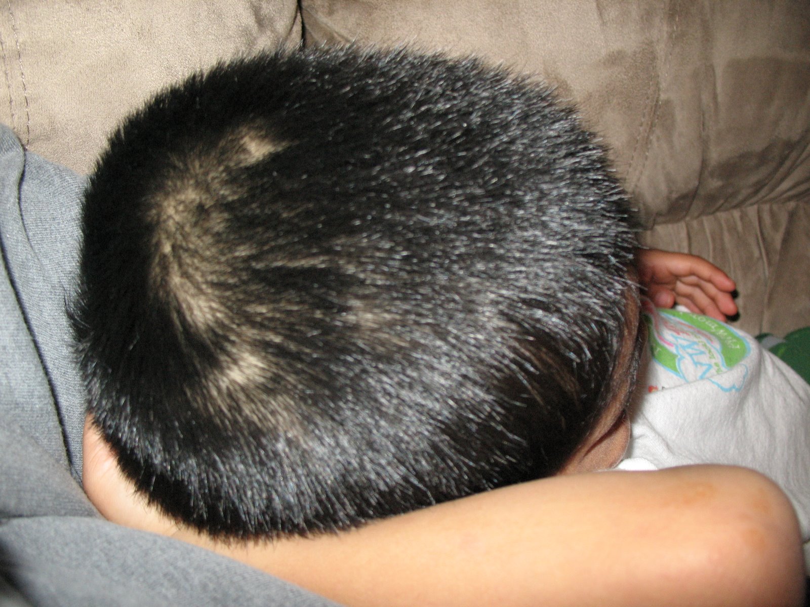 So 2 of our boys have beautiful, brown skin…that is, when we are good parents and lotion them. Otherwise they are fairly gray. With the pace our life goes at, sometimes we forget the lotion. I don’t know if you can see it well in this picture but here’s Carlos with one leg lotioned and one not-so-much.